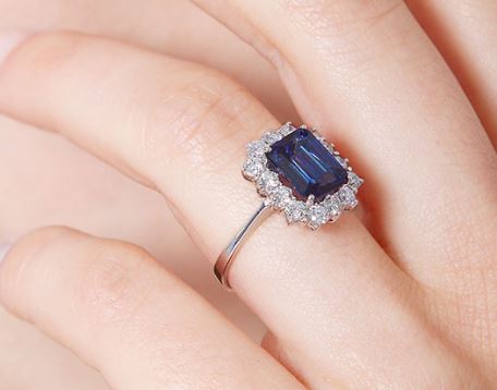 Pietre Diamanti e Zaffiro blu - Metallo Oro bianco - Timbro metallo 750 millesimi / 18k - Caratura Brillanti totale 0.65 - Caratura Zaffiro Blu 3.30 - Brand Gioielli di Valenza