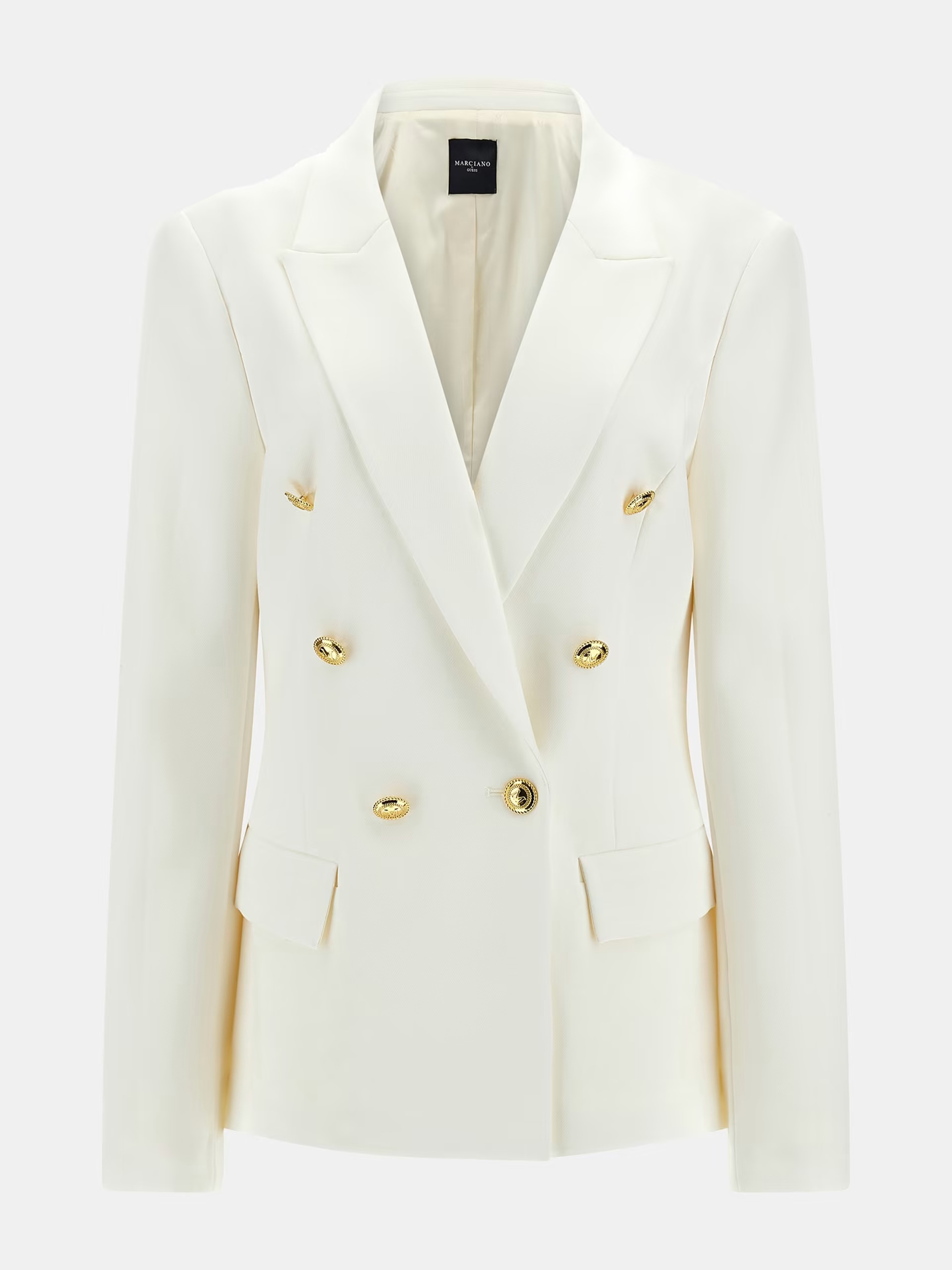Disponibile solo in Rosa - Guess: Blazer doppiopetto marciano - Blazer in misto viscosa. Revers classici. - Maniche lunghe. Vestibilità regular - Chiusura con bottoni. DECORAZIONI: Bottoni con logo. L'immagine riporta una taglia 40