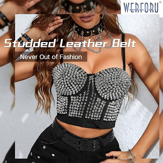 Qualità eccellente: questa cintura punk è realizzata in pelle PU di alta qualità, il prodotto è durevole e non facile da indossare e strappare,è fine e morbida, comoda da indossare. La cinghia della cintura è decorata con rivetti quadrati in metallo, i rivetti sono forti, non cadono facilmente e hanno una lunga durata. Aspetto elegante: questa cintura con borchie in metallo in stile punk, rock e hip hop ha un aspetto elegante e un fascino unico che può dare il tocco finale ai semplici indumenti. Indossa questa cintura con rivetti punk rock come punto focale in questa stagione per un look glamour tutti i tuoi. Lavare solo a mano - Dimensioni del prodotto: ci sono 3 misure per questa cintura con borchie: S: 100 cm, M: 110 cm, L: 120 cm. Larghezza della cintura: 3,8 cm di larghezza. La cintura ha 8 fori per regolare la taglia, è possibile regolarla in base alla situazione reale per ottenere una sensazione confortevole.